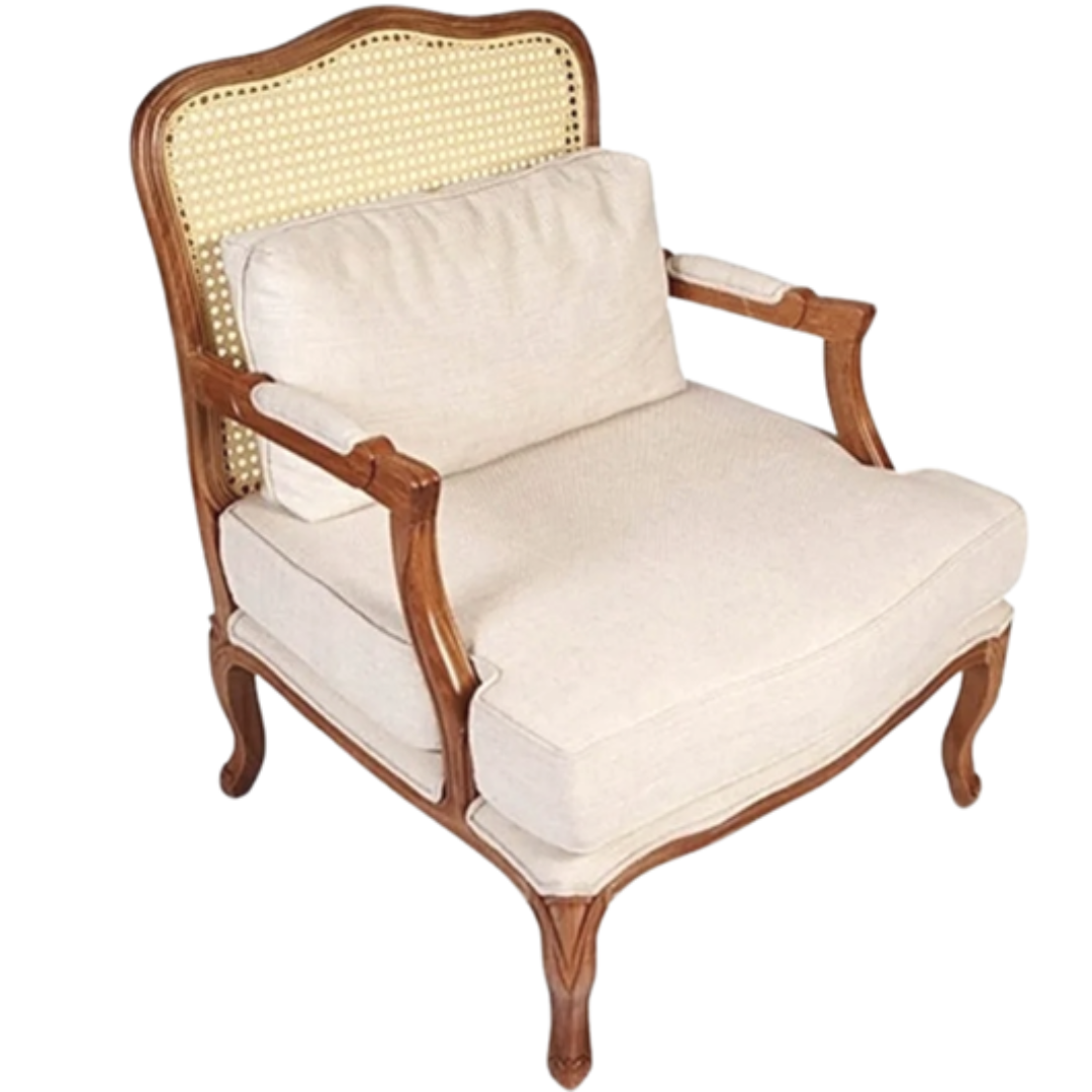 Poltrona Clássica Firenze Madeira e Off White